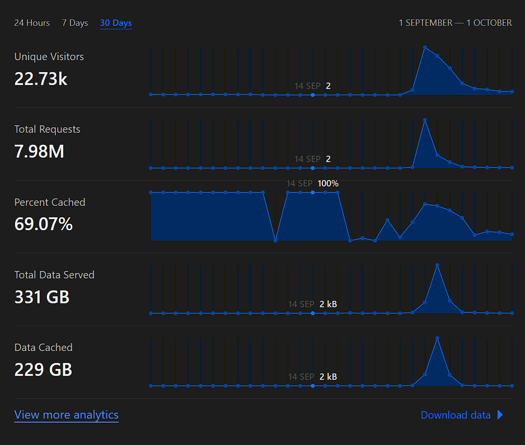 This year is the first year that we used Cloudflare as a CDN rather than only DNS hosting. We heard that Cloudflare provided good DDOS protection and wanted to see if it would work wonders for our setup. It would also potentially save us a lot of bandwidth to our origin, which Google charges a fortune for. We opted to use the CDN features only for the scoreboard, as a WAF in front of our challenges would probably block malicious requests to the challenges which is what we donât want. Also Cloudflare doesnât support proxying TCP challenges (at least on the free plan).