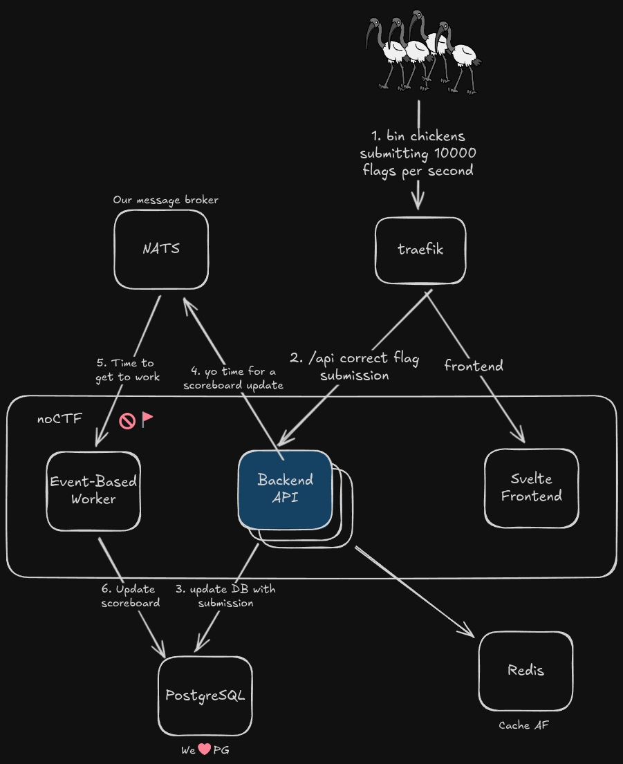 We built noCTF to be a scalable and performant CTF platform that works for large scale CTFs like DownUnderCTF ( you may have heard of it, link in bio).